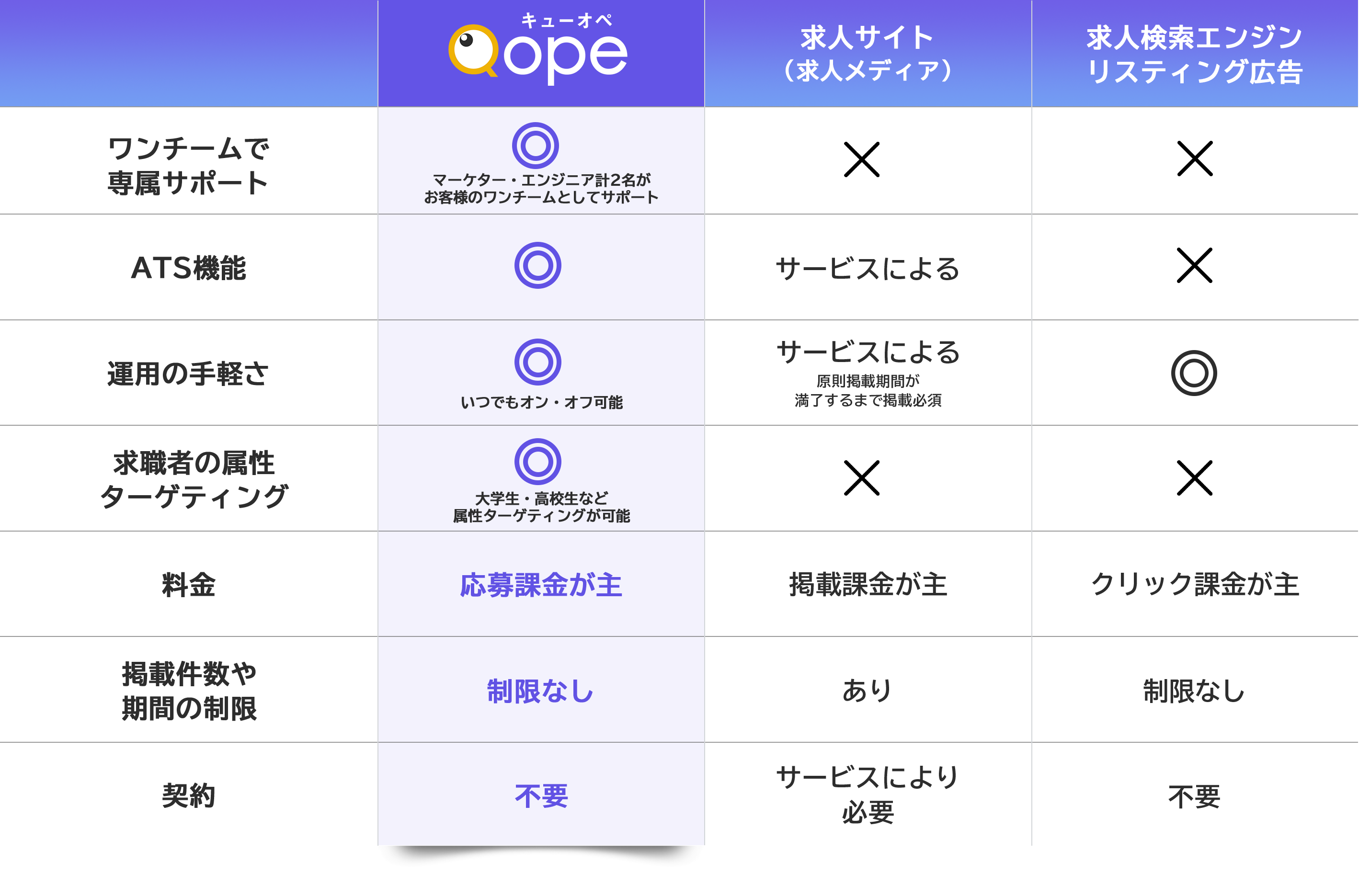 Qope は求人広告をメディア・ミックスでシンプルに掲載できる採用ソリューションです。
